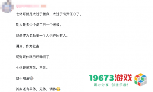 由于这种“七休日”制度太过美妙,所以大家不仅不太愿意把他称为反派,反倒是将其言论奉为了“打工人圣经”,在社区引发了广泛的反响。