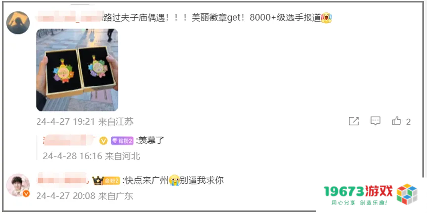 其次是参与感。10周年庆典期间,《开心消消乐》从线上走入了线下,官方选择了玩家呼声最高的10所城市举办“偶遇”活动,玩家在当天公布的具体位置打卡就能获得定制周年庆气球,官方还藏了个未曝光的玩法,如果关卡≥300关且关卡数正好是10的倍数可以获得定制徽章,从玩家反馈来看活动相当火热,有人为拿徽章当场打开游戏闯关。