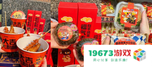 食物的包装也颇有看点。整体延续了吉文化的红黄配色,舞狮元素与拥有百变造型的光子鸡小队IP相映成趣。既有吃鸡求吉利美好寓意,又有辨识度,十分合乎追求“吉利”BUFF的年轻人心意。