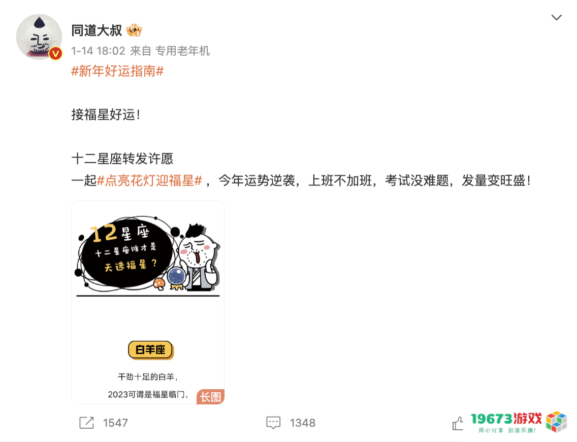 知名星座命理博主同道大叔趣味解读《十二星座谁才是天选福星》新年运势,分享十二星座的福星逆袭时刻,为铲铲福星人送出了有关爱情、事业、学业、财富上的祝福。