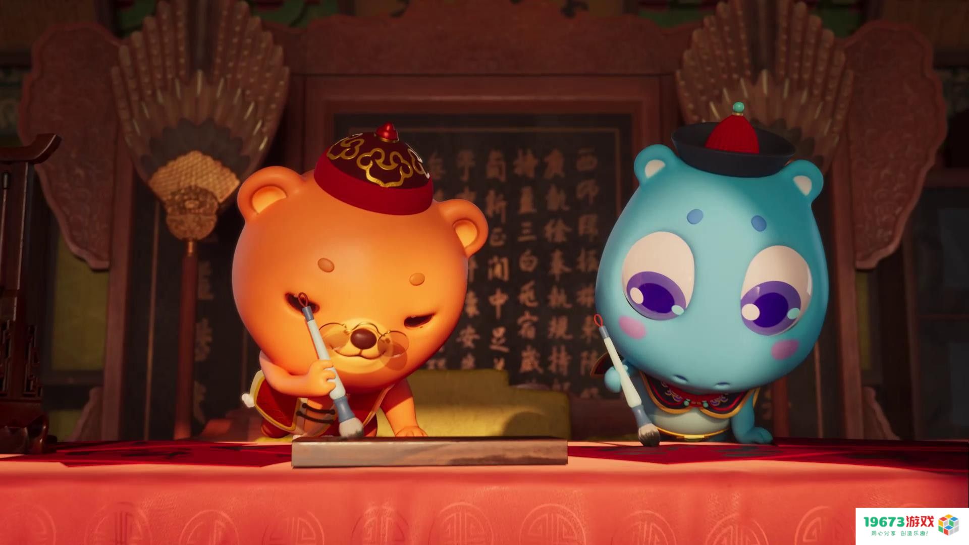被《开心消消乐》的春节活动吸引住,始于它在朋友圈里疯传的CG短片。这只短片主要讲述了在知名网红宫猫帕帕的引领下,《开心消消乐》游戏里的7只小动物通过完成脊兽归位、写福字以及点亮宫灯的任务,收集宝珠唤醒神龙的故事。