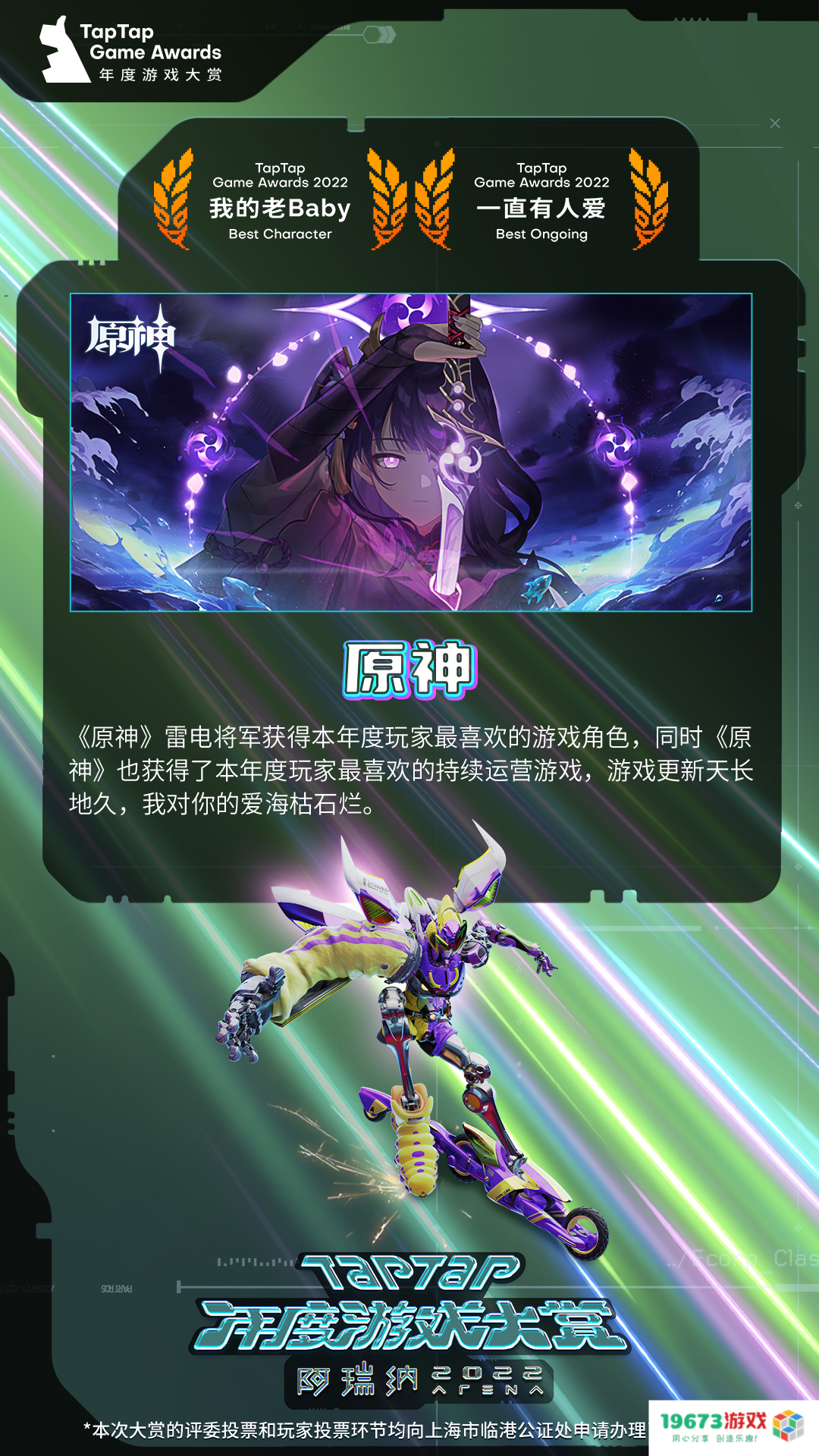 除了专业奖项外,TapTap也为这届大赏呈上了更“新”的菜式:“全新升级的玩家奖项”!别样的命名方式带来“有趣”的第一印象,“妙啊妙啊”、“我的老Baby”、“新的风暴”、“一直有人爱”、“搞快点儿”,全部由玩家票选得出入围名单和获奖游戏。奖项数量的新高也代表TapTap愿意重视玩家的感受和意见。在收获150w张选票后,《霓虹深渊:无限》、《原神》、《明日方舟》、《泰拉瑞亚》等游戏顺利突围进入围名单。