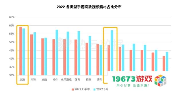 2022下半年,海外新增买量手游占比,虽较上半年下滑降至25%,但该数据仍居近3年的高位。休闲类游戏依旧是全球买量手游类型的 No.1,动作 & 射击类买量游戏数是今年占比排名上升最快的类型。此外,各类型手游加大视频广告投放占比,尤以竞速游戏投放视频广告的占比领衔全品类,音乐类成为下半年视频广告占比提速最快的品类。