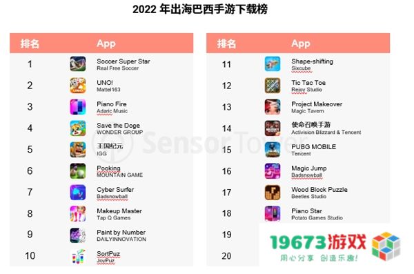 以巴西出海手游市场为例,巴西市场作为近年来热度逐渐攀升的游戏出海市场,目前与全球重点市场之间差异,正在急剧缩减。具体而言,一方面休闲类游戏在巴西出海市场的下载量急剧攀升;另一方面,恰逢“世界杯年”, 足球游戏在巴西受众广泛,加之世界杯的热度,使得出海手游《Soccer Super Star》成功拿下 2022 年下载榜首位。