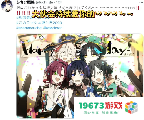 1月3日,原神玩家们一上线就收到了来自流浪者的生日邮件。跨年的余温还未降下,这封生日邮件也是给了不少玩家一个惊喜。不过在流浪者的生日前后,就已经有很多玩家为流浪者创作贺图、手书等高质量二创来为他庆生,国外也举办了流浪者的生日会,在生日当天还登上了外网推特的热搜。尤其是日推,日本的原神玩家格外喜欢流浪者,当天的词条点进去全是流浪者的生日贺图。
