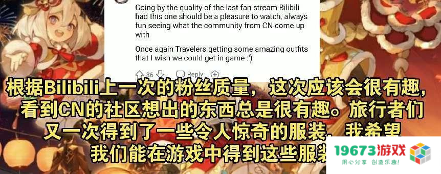 这幅图的来源是B站一位名为季年Season的大佬。眼看着年关将至,大佬们又搞起了原神的传统“新春晚会”,这张宣传图就是新春晚会的预热图。这张图被搬运到海外,获得了老外们的讨论和赞赏,譬如“不输官方”等等。还有老外依据中国社区一贯的二创作品质量,直接给了中国原神社区一波夸赞,直言“中国玩家想出来的东西总是很有趣”。