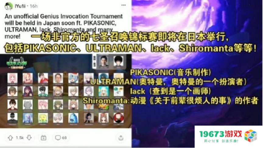 不过说到社区氛围,老外们也是不甘落后的。虽然大家伙讨论的内容不太一样,但都是紧跟游戏节点的。比如日本社区最近就在沉迷打牌,七圣召唤锦标赛都准备上了。不仅邀请了包括漫画家、演员等领域内的大佬,还把各路的虚拟主播、音乐人等原神玩家集合在一起,自发办了一场非官方的大牌大赛。不得不说大家伙都爱打牌是真的,原神七圣召唤这手安排,直接把玩家给拿捏了呀!