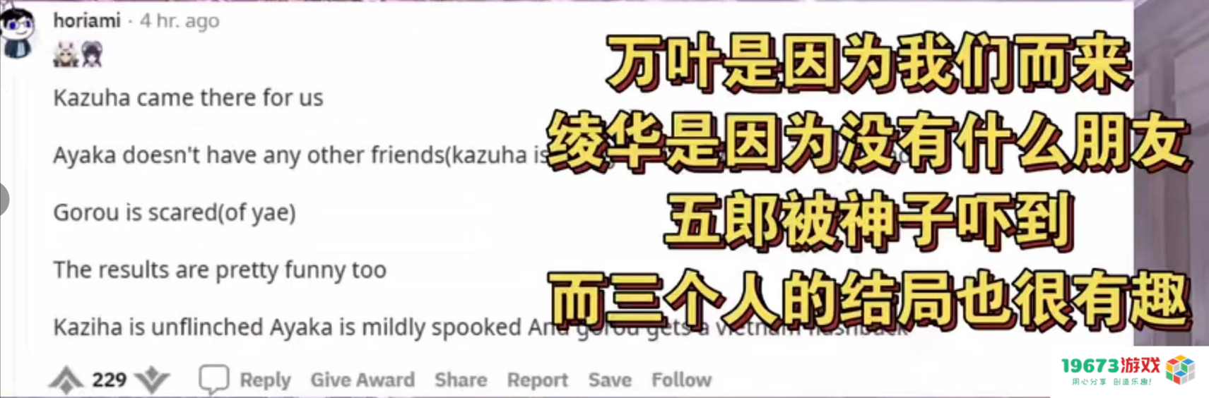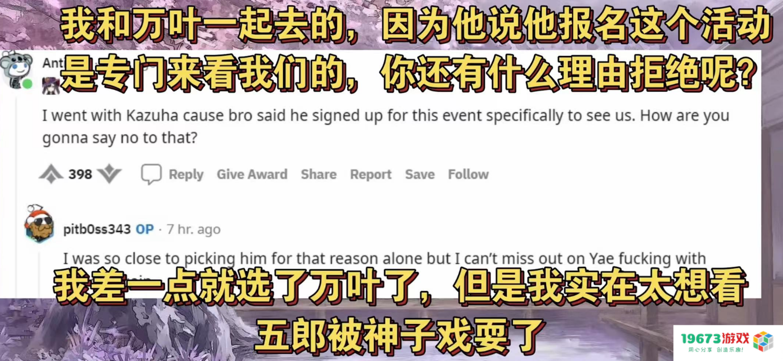当然,五郎作为夹在万叶和绫华两个人气王之间的小伙子就有点“凄惨”了。不过还是有很多老外非常喜欢五郎,甚至在选角色的时候犯了选择困难症,在社交平台求助“我到底该选谁”。