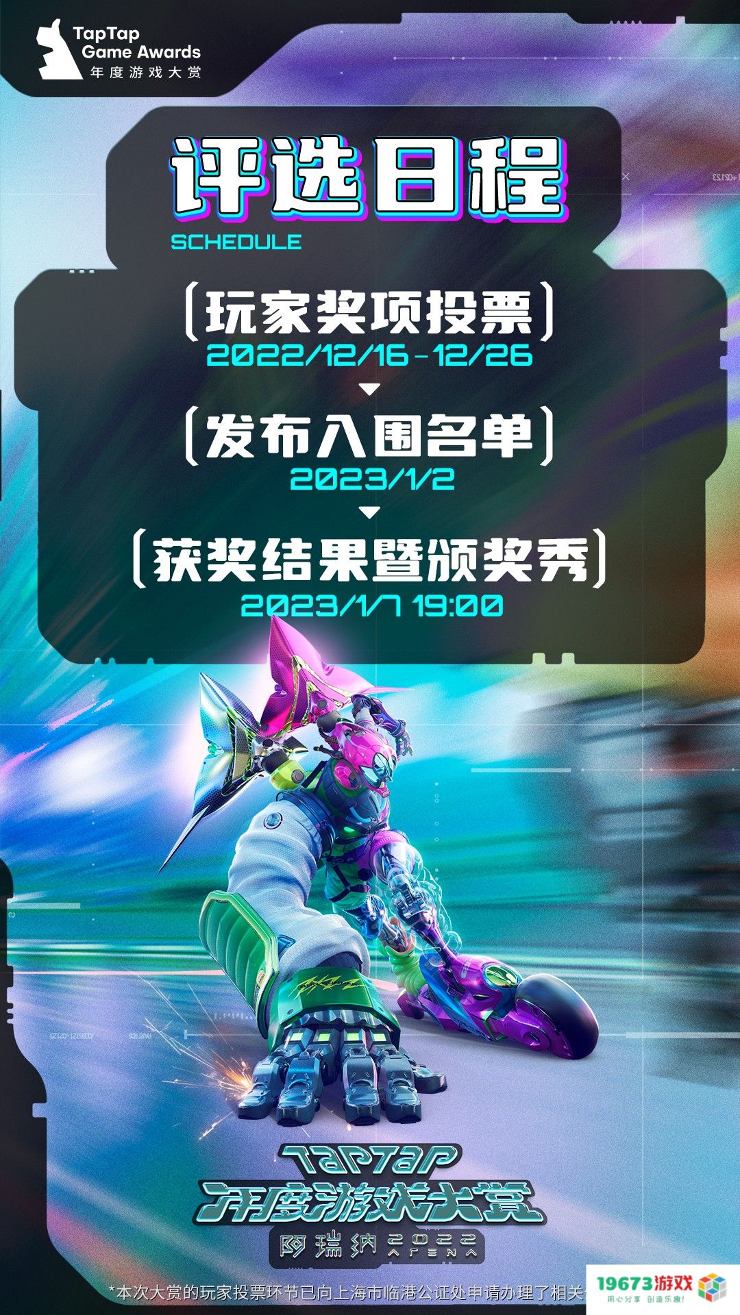 相信关注游戏圈的各位都不会对TapTap感到陌生,这是一个为广大玩家推荐高品质游戏的社区商店。每年岁末,TapTap都会以“年度游戏大赏”的形式,评选本年度最好玩、最值得被记住的手机游戏。但与往年不同的是,本届大赏TapTap将玩家带到了名为“阿瑞纳”的世界,在这里,每个游戏都有代表它的竞技者,当他们齐聚一堂,准备分出高下的时刻,就是整个世界的盛会。2022 TapTap 年度游戏大赏将于1月7日晚19:00在TapTap、微博、微信视频号、bilibili、斗鱼、虎牙、快手开启直播。 前往 TapTap 搜索“大赏” 参与投票 还有能获得更多好礼。