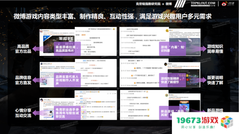 白皮书显示,在微博平台上,约49.7%的用户认为其他用户的评论对选择游戏的帮助很大,51.3%的用户表示可以找到更多志同道合的游戏玩家。游戏品牌可以在用户认可的平台发掘更宽泛的玩家群体,以体验式内容吸引用户的讨论与下载。