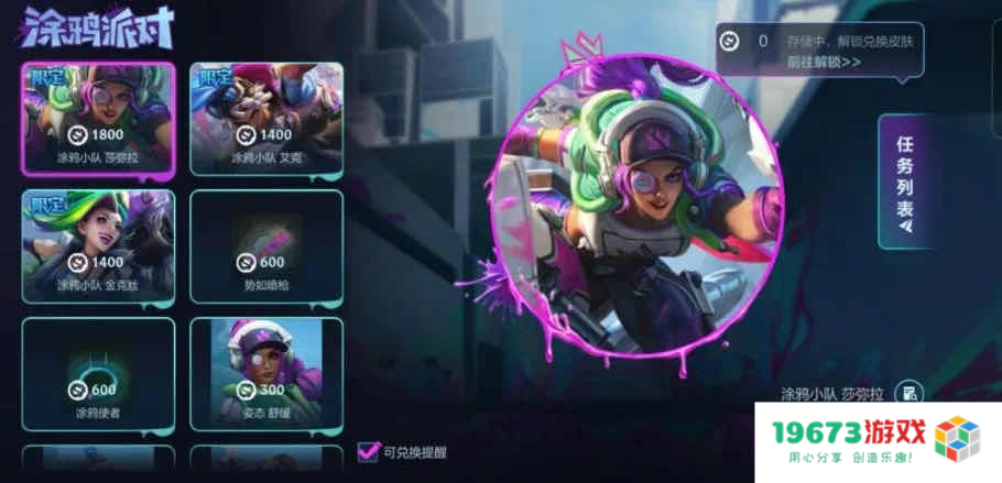 英雄联盟手游涂鸦小队系列皮肤正式上线,在涂鸦小队系列皮肤当中,包含的英雄有涂鸦小队 莎弥拉、涂鸦小队 艾克、涂鸦小队 金克丝。这款皮肤以绚丽的色彩为主题,人物皮肤配色大胆,能够看到各种颜色的碰撞和混搭,玩家在游戏当中可以完成涂鸦派对主题任务,并兑换对应皮肤。