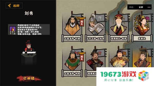 在无悔华夏游戏中上线了一个全新的君主刘秀,部分玩家不知道新君主刘秀的君主藏品与效果分别是什么,下面就为大家带来无悔华夏游戏中刘秀的君主藏品介绍说明,有需要的玩家可以参考。
