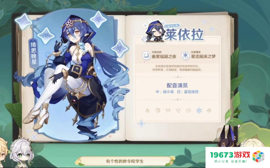 莱依拉则是一位能够产生冰协同攻击的角色,在队伍中角色进行普攻的时候可以积攒冰系的“小星星”,发射出去之后可以对敌人造成冰元素伤害,说不定很适合用来与绫人、宵宫这种打普攻的角色配队。