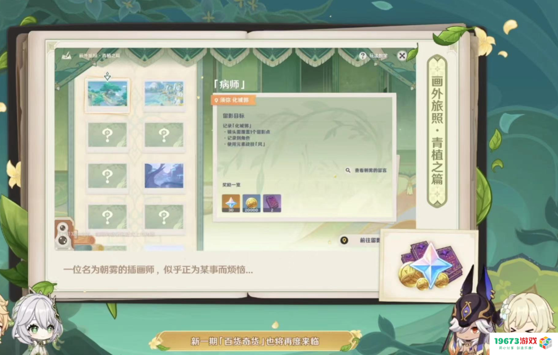 同时,在白嫖原石这块原神也给众多旅行者带来了福利。最令人欣喜的就是我们的好兄弟立本又回来了,还带着那个拍摄画片就能给原石的画家一起回来了。这两个轻松的活动一同开启,大家伙又可以来一波原石大丰收了!
