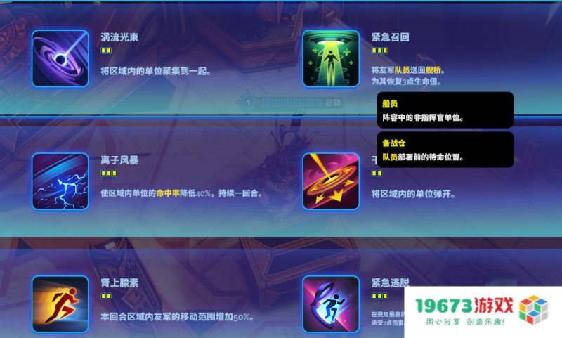 而开局可选的辅助技能是同样有一个能够让棋子返回舰桥的技能。