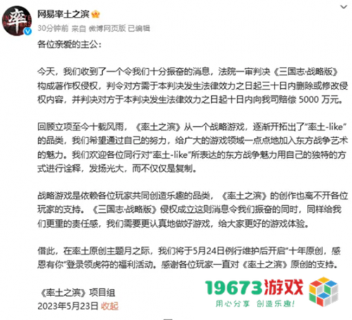 值得注意的是,三战自身正深陷另一场诉讼泥潭。2023年网易起诉三战抄袭《率土之滨》,一审判决三战侵权成立并赔偿。这一背景让三战的“正义宣言”略显尴尬——用法律武器维权无可厚非,但若自身存在尚未决侵权纠纷,高举道德大旗的姿态难免引发双标质疑。