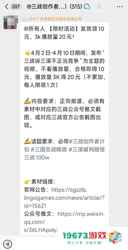 在三谋的公告中,一条未被广泛报道的细节引发关注:三战涉嫌通过“创作者激励计划”引导玩家发布抹黑内容,每条动态支付20元报酬。这种行为与2024年江苏法院判决的多起“游戏水军拉踩案”高度相似——侵权公司雇佣水军在游戏内散布负面言论。此类灰黑产的存在,不仅扭曲了玩家社区的生态,更让行业竞争陷入“互泼脏水”的恶性循环当厂商将资源投入“20元一条”的抹黑工程时,真正受损的是玩家的游戏体验与行业的创新动力。